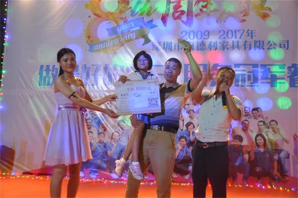 積分是我們今年引進的管理模式,總分第一名得主是陶少斌,總共積分獎勵12500分。加分是形式,目的是弘揚我們海德利助人為樂的精神,營造正能量的團隊,只要我們處處充滿正能量,積極上進,我們就能克服一切困難,在任何時候,我們海德利人都有一股拼勁、狠勁,源源不斷的訂單、蒸蒸日上的業績,需要所有海德人的共同努力。
